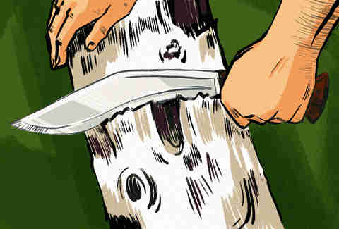 Joining the pot and the ferro rod in the group of top three most important things to have in a survival situation is a knife -- and not just any sharp blade will do. Alan chose the kukri knife for its ability to perform out of proportion to its size. It’s thick and heavy enough to split wood like a hatchet or a machete, but if you keep it sharp, a kukri knife is also able to do some very fine work, like cleaning fish or carving spoons, just in case you're expecting company and really want some spoons.